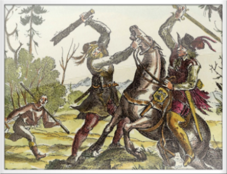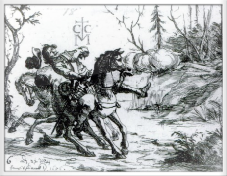 Die Bauern fliehen vor einem Reiter, H.U. Franck 1656