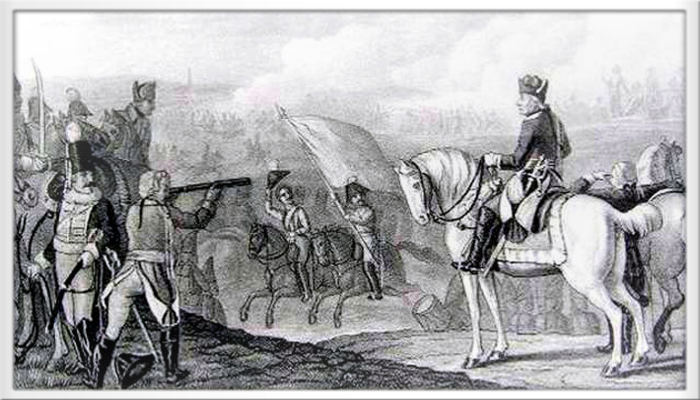 Friedrich der Große in der Schlacht bei Roßbach Nähe Weißenfels am 05. November 1757 zwischen siegreichen Preußen und Franzosen