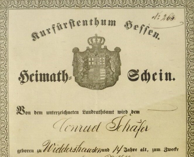 Heimatschein Widdershausen 1862 |