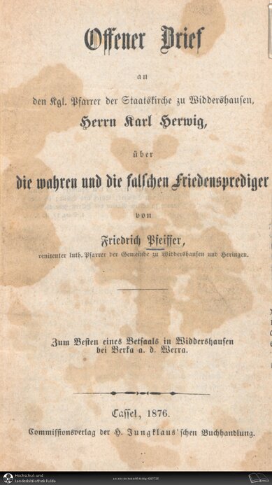 Friedrich Pfeiffer, abgesetzter Pfarrer von Breitau, Kreis Rotenburg, 27. Dezember 1873 |