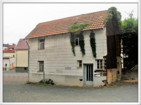 Ehemaliges Auszügerhaus der Land- und Gastwirtschaft Ruch später Führer in Widdershausen neben der evangelischen Kirche, seitliche Ansicht, vor Renovierung