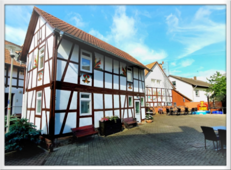 Ehemaliges Auszügerhaus der Land- und Gastwirtschaft Ruch später Führer in Widdershausen neben der evangelischen Kirche, seitliche Ansicht, nach Renovierung