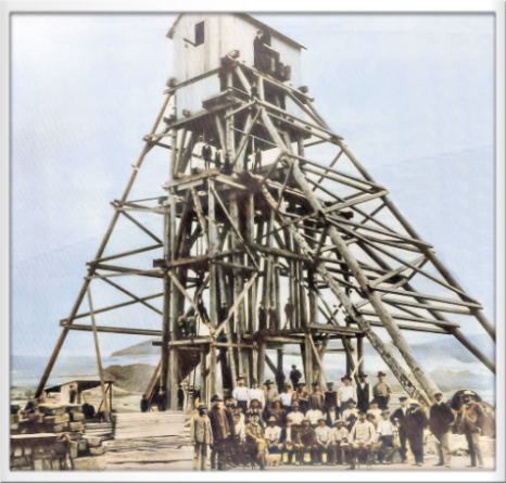Schachtteufe des Schachtes Grimberg I in den Heringer Auewiesen im Jahre 1901, unter Abteufen versteht der Bergmann das Herstellen von Schächten oder anderen senkrechten Grubenbauten