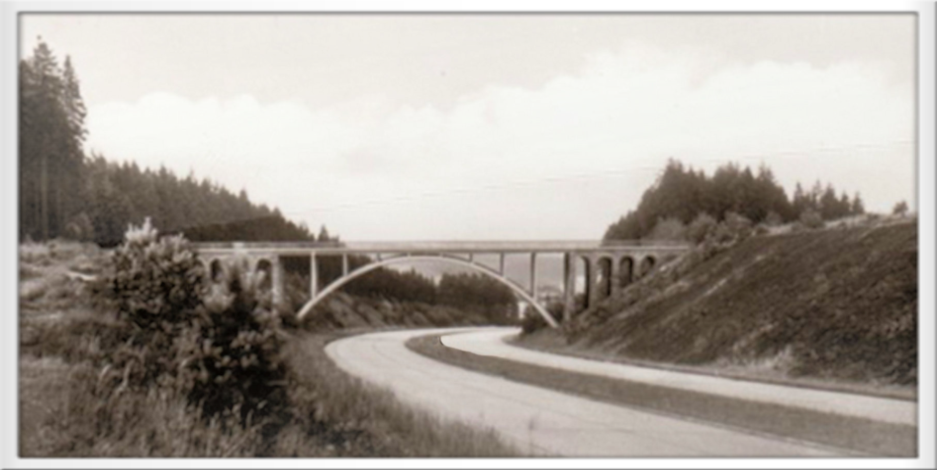 Eichhorst Brücke zwischen den Anschlußstellen Friedewald und Hönebach über die Autobahn A4 nahe Hönebach, die Kreisbogengewölbe aus Sandstein sind noch zu sehen, nach dem Wiederaufbau 1951/1952