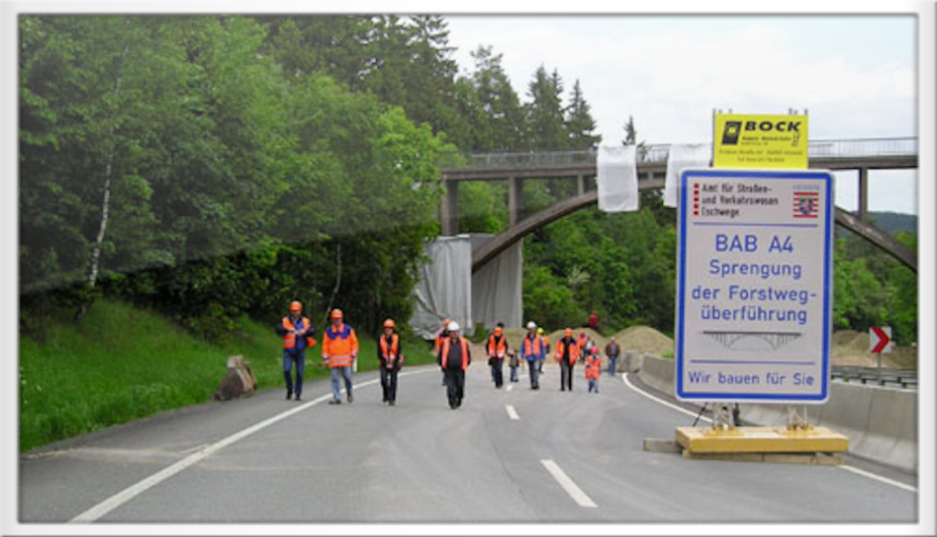 Vorbereitungen zur Sprengung der Forstweg-Überführung über die Autobahn bei Hönebach im Mai 2009