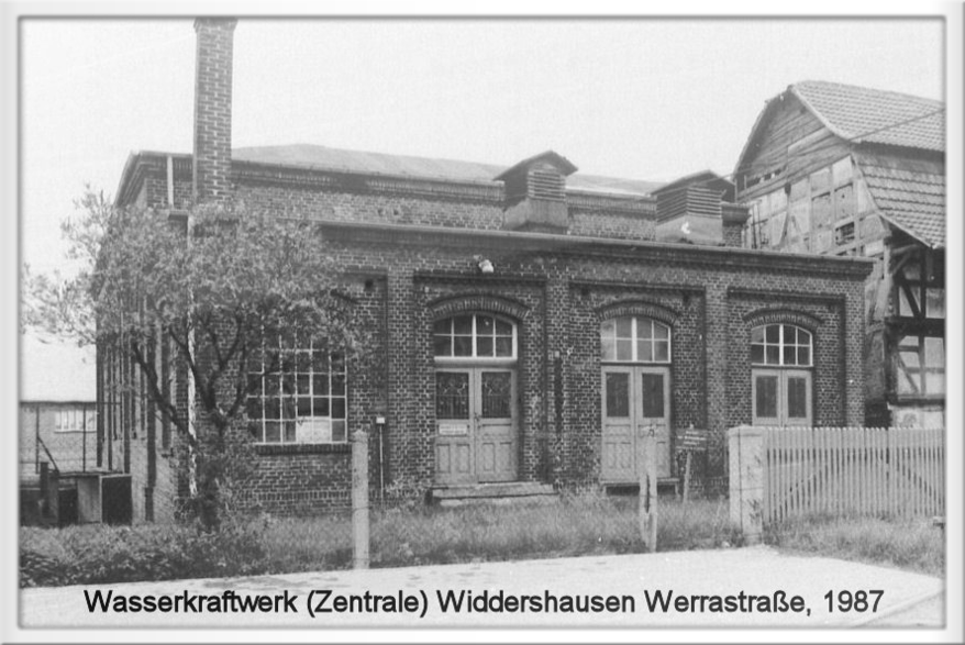 Wasserkraftanlage des Kaliwerkes Wintershall an der Werra in Widdershausen 1987, Eingang von der Werrastraße vor der Renovierung und Privatisierung