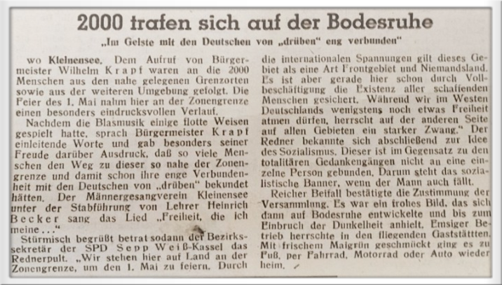 Zeitungsartikel der Hersfelder Zetung über die 1. Maifeier am Jagdhaus Bodesruh mit 2000 Besuchern 1950