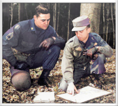 Lieutenant (LT) Minor Peeples, C Company, 3rd BN, 14th Armored Cavalry and Patrol Leader SFC Hagen briefs a patrol before departure to the border 1954 near Bad Hersfeld