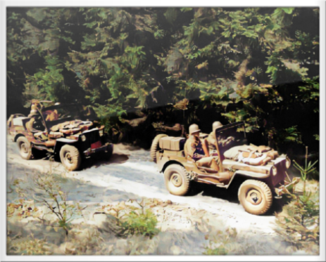 SFC Hagen with his patrol stops to adjust straps on jeep as young Geman girls as above.