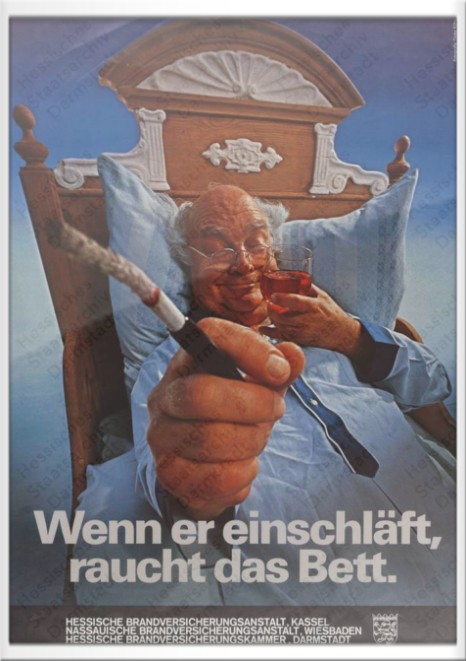Werbung der Hessischen Brandversicherung mit Warnung vor Brandursachen