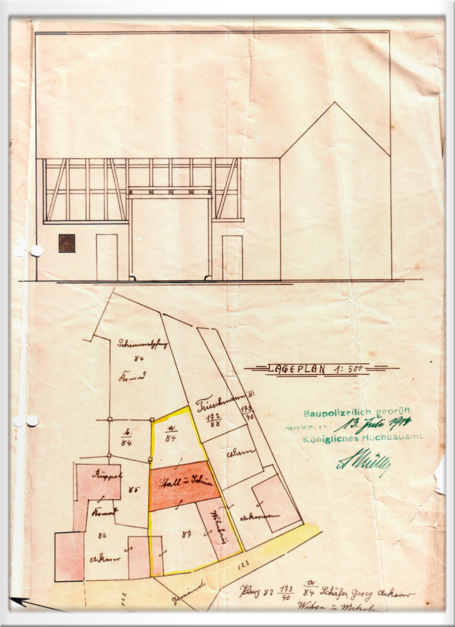 Für den Neubau der Scheune am Haus 14, heute die Brückengasse 2, ehemalige Gaststätte Koch, haben wir noch die Architektenpläne aus dem Jahre 1913/1914.