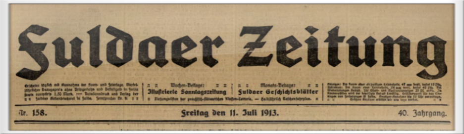 Fuldaer Zeitung vom 11. Juli 1913 vom Großbrand in Widdershausen