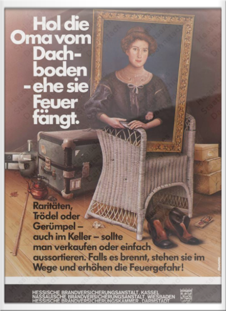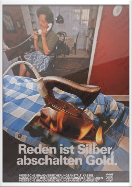 Werbung der Hessischen Brandversicherung mit Warnung vor Brandursachen