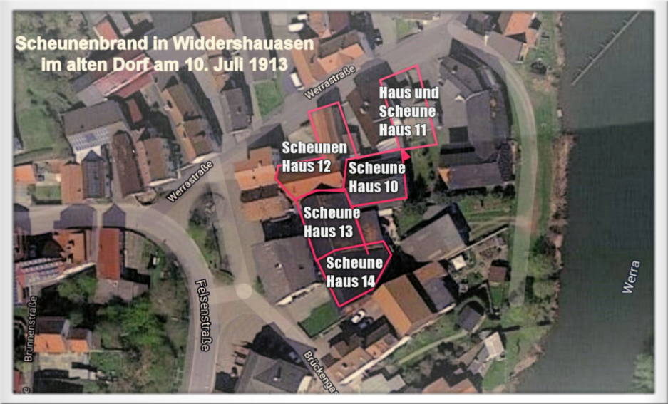 Vom Großbrand am 10. Juli 1913 betroffene Gebäude in Widdershausen