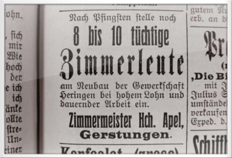 Bau der Werksanlagen, Stellenanzeigen, hier Zimmerleute