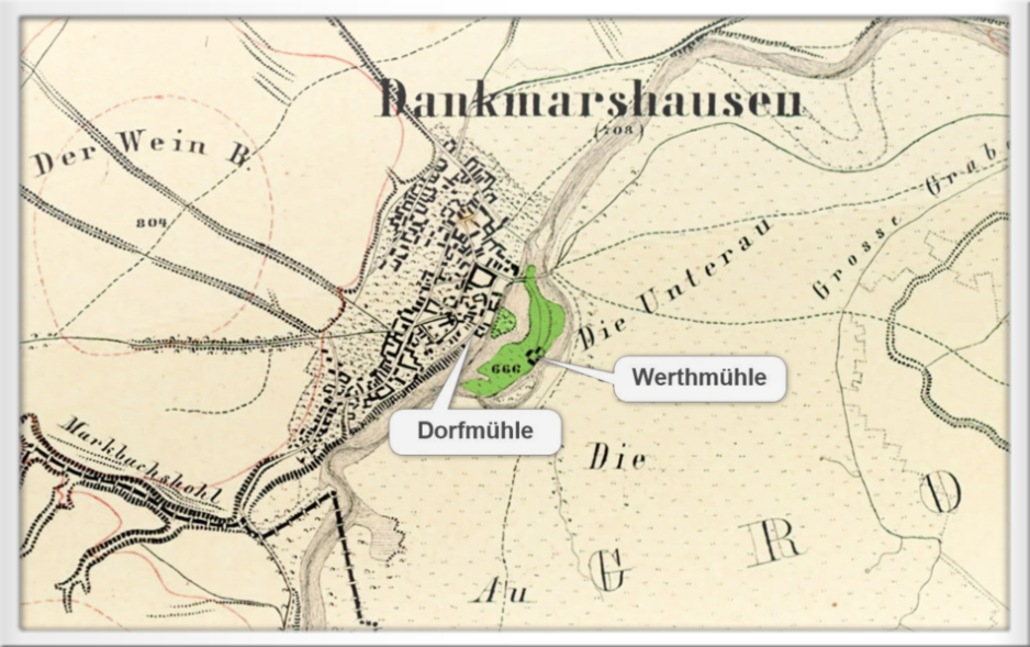 In Dankmarshausen sind seit Generationen zwei Werramühlen bekannt, die sogenannte Dorfmühle am Dorfrand und die Werthmühle auf der großen Werrainsel.