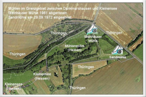 Zwei Mühlen, die Steinhäuser Mühle der Familie Hassebrauk und die Sandmühle der Familie Führer, unmittelbar in der Nähe an der Landesstraße gelegen, wurden den sozialistischen Grenzwächtern im "Kalten Krieg" geopfert, sie wurden geschleift, um die Sicht- und Schussfreiheit abzusichern. Die Familien wurden in das Dorf Dankmarshausen umgesiedelt.