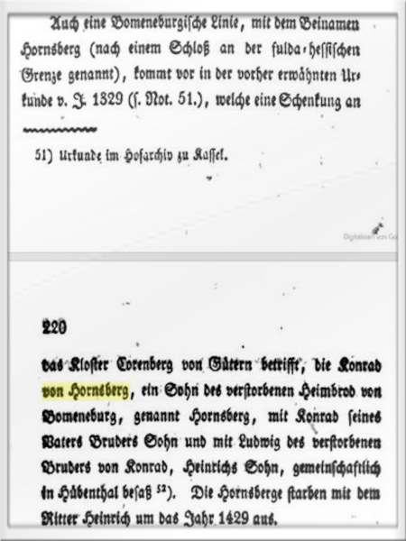 Hinweis auf das Geschlecht von Hornsberg in die Ritterburgen und Bergschlösser Deutschlands