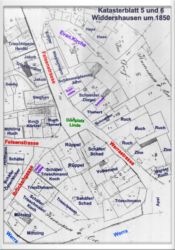 Bemerkenswert ist die Bezeichnung der Widdershäuser Kirche auf dem Katasterblatt 5, dort wird die Kirche noch als Sankt Martinskirche bezeichnet, d.h. die Kirche war in der vorreformatorischen Zeit dem heiligen St. Martin geweiht.