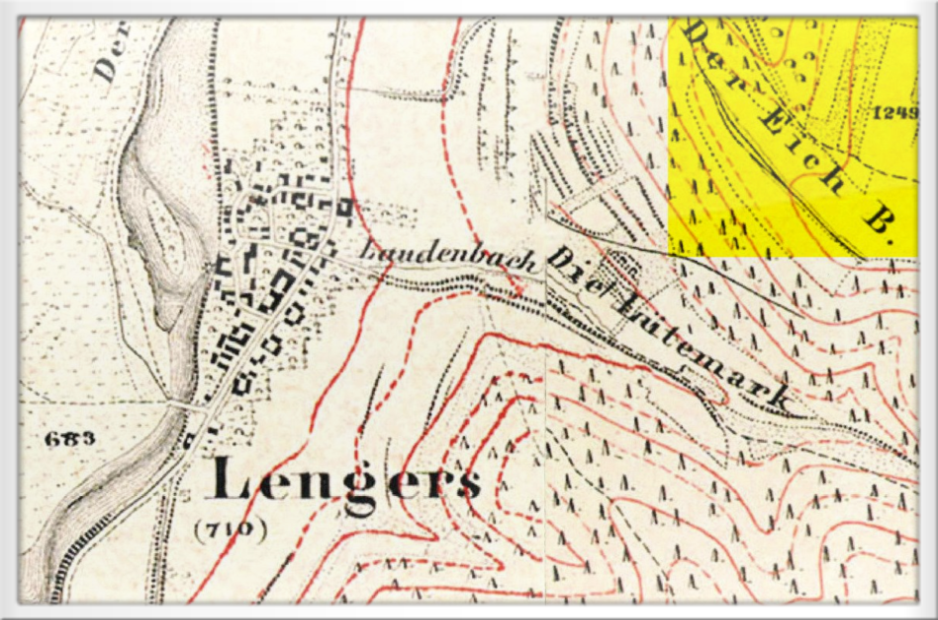 Die Eichkuppe oder der Eichberg bei Lengers auf einer Landkarte von 1850/1851