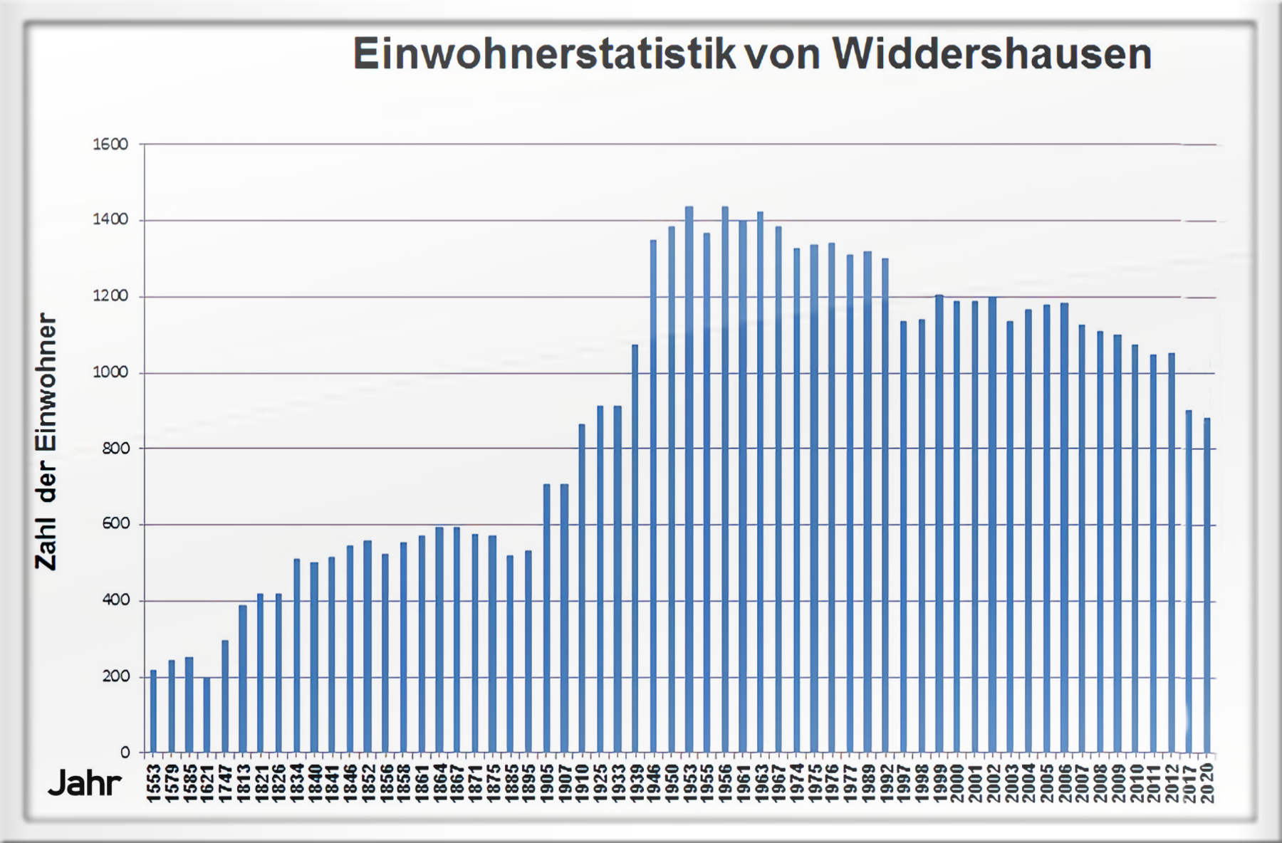 Einwohnerstatistik für Widdershausen vom Jahre 1553 bis 2020