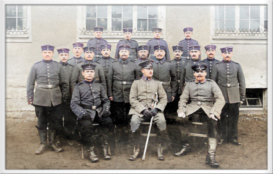 Der Pionierunteroffizier und spätere Fliegerunteroffizier Konrad Ruch aus Widdershausen an der Werra vorne mittig mit Säbel