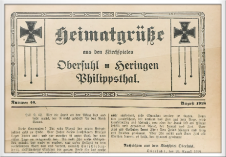 Der Pfarrer Fritz Stamm berichtete während des ersten Weltkrieges in den Heimatgrüßen (Die Heimatgrüße aus den Kirchspielen Obersuhl, Heringen und Philippsthal erschienen von 1914 bis 1918) über Einsatzgebiete, Verwundungen, Beförderungen und Todesfälle der Soldaten aus den Kirchengemeinden.