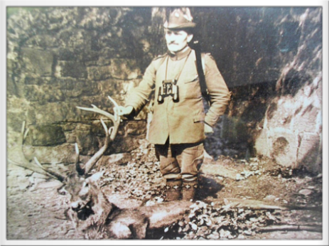 Der Friedewalder Revierförster Albrecht mit einem erlegten Hirsch 1928