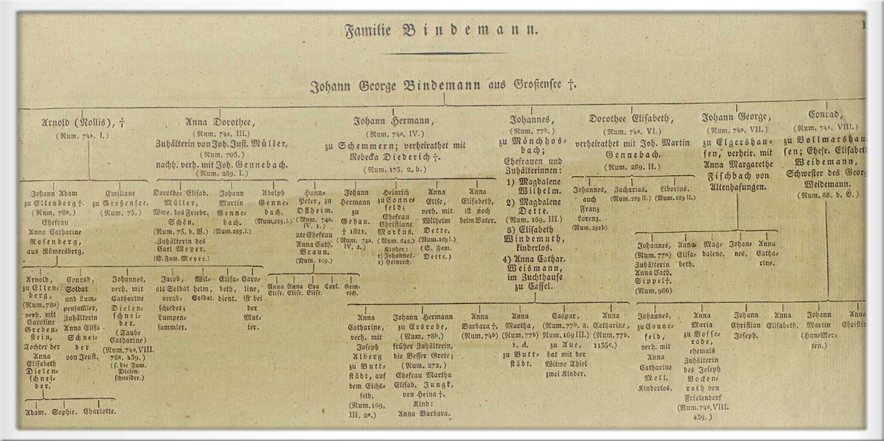 Familie Bindemann aus Großensee, F.G. Pfeiffer, Stammtafeln mehrerer Gauner-Familien in der Provinz Niederhessen, Cassel 1828