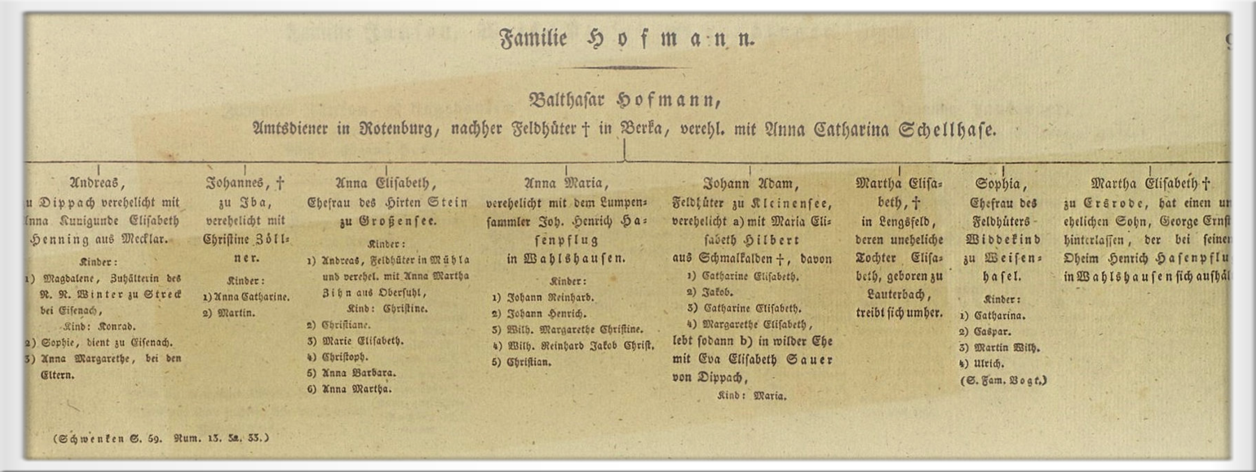 Familie Hofmann aus Kleinensee, F.G. Pfeiffer, Stammtafeln mehrerer Gauner-Familien in der Provinz Niederhessen, Cassel 1828