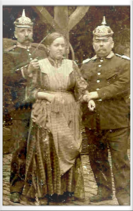 Hessische Gendarmen verhaften eine weibliche Person (gestellte Aufnahme um 1890)