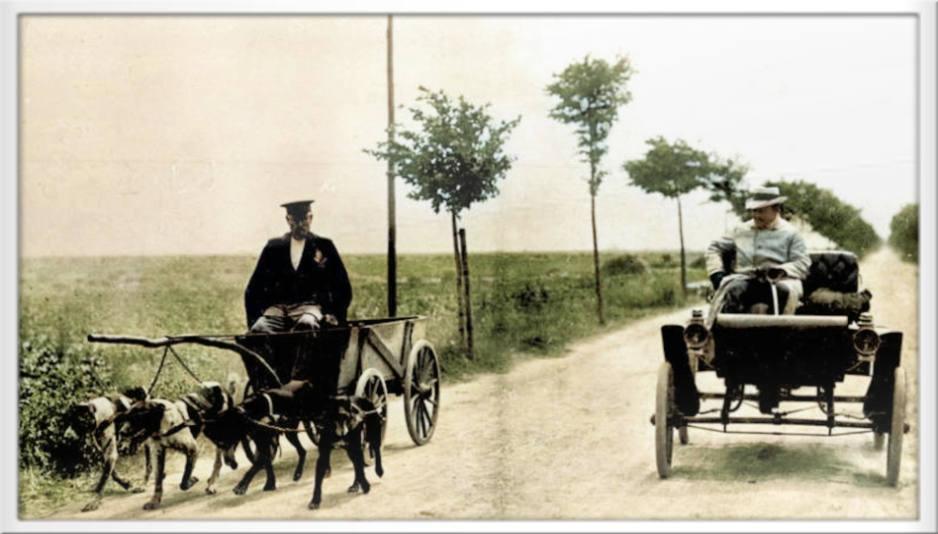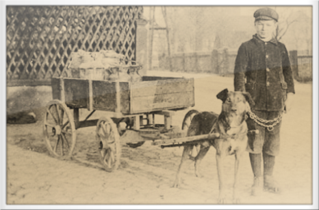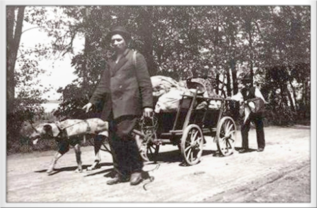 Wer sich früher kein Pony-, Kuh-, Ochsen- oder gar Pferdegespann leisten konnte, war froh, wenn er wenigstens ein oder mehrere Hunde vor einen kleinen Wagen spannen konnte. Denn es war sicher bequemer, als die Waren auf einem kleinen Handwagen oder auf einem Schubkarren mit eigener Kraft transportieren zu müssen. Außerdem hausierten viele mit einem Rückentragkorb oder mit einem übergeworfenen Quersack oder boten ihre Sachen aus einem Bauchladen feil. Nur wenn man diese Verhältnisse betrachtet, läßt sich ermessen, welche Bedeutung ein Hundegespann für die Menschen hatte.