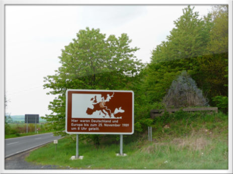 Erinnerungstafel an den Eisernen Vorhang: Hier waren Deutschland und Europa bis zum 25. 11.1989 geteilt. Diese Tafel steht vor Eingang zum Pfaffental, dem Igelsdorfer Siedlungsgebiet, in Richtung Leimbach.