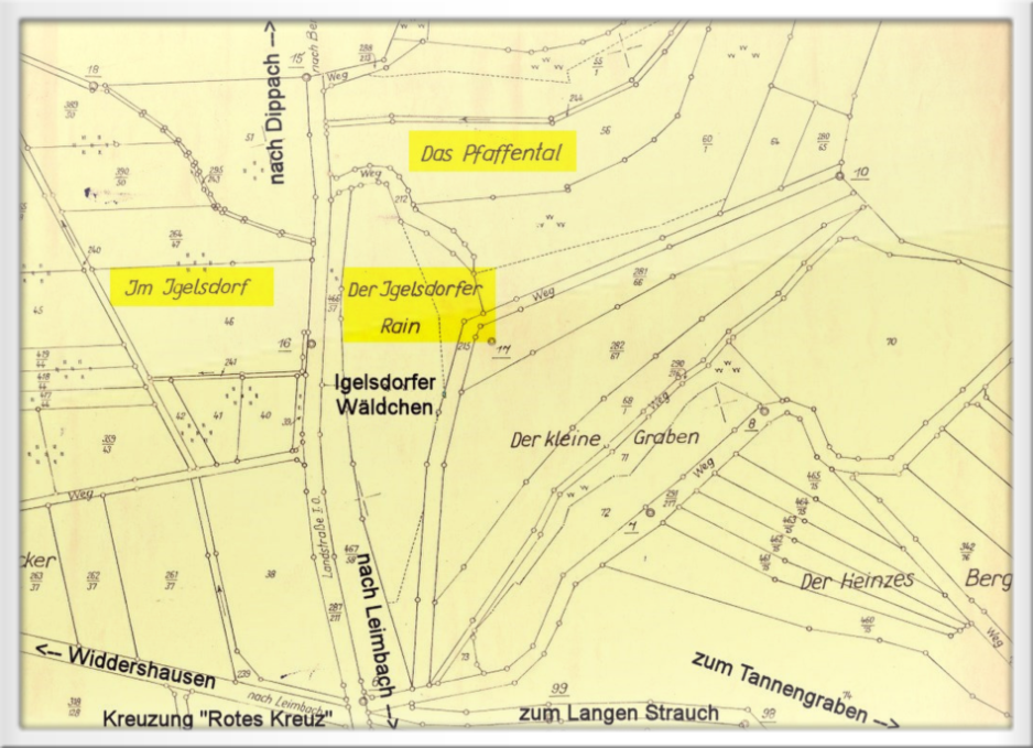Zwischen Dippach und Leimbach und direkt gegenüber von Widdershausen liegt die Wüstung Igelsdorf (Egelsdorf) noch auf hessischem Gebiet