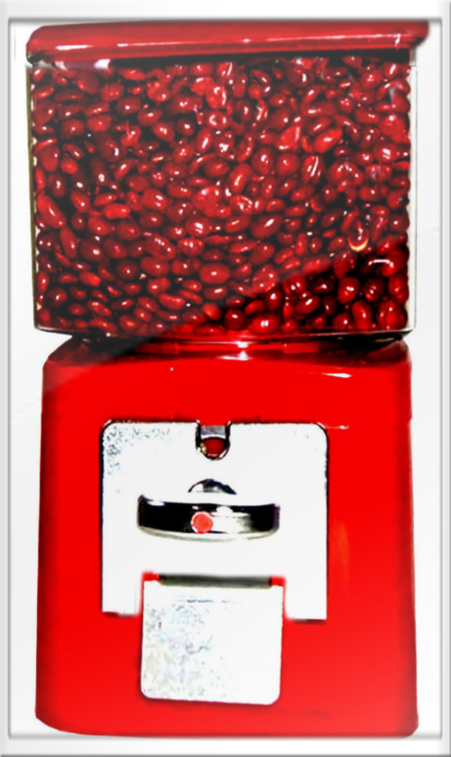 Lecker waren früher die mit rotem Zuckerguß überzogenen Erdnüsse, die habe ich geliebt, hier in einem Innen-Automaten in der Gaststätte
