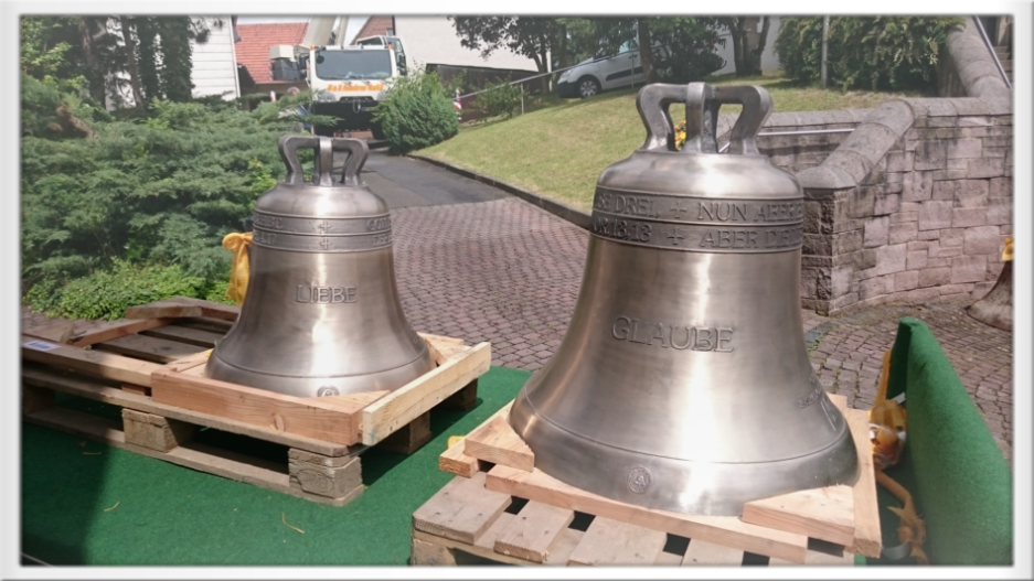 Die neuen Widdershäuser Bronzeglocken kurz vor der Einbringung im Juni 2016