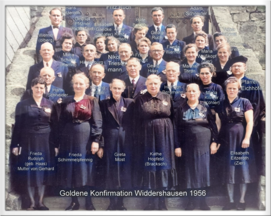 Goldene und Silberne Konfirmation 1956 in Widdershausen der Jahrgänge 1892 und 1917 mit Pfarrer Eichhöfer