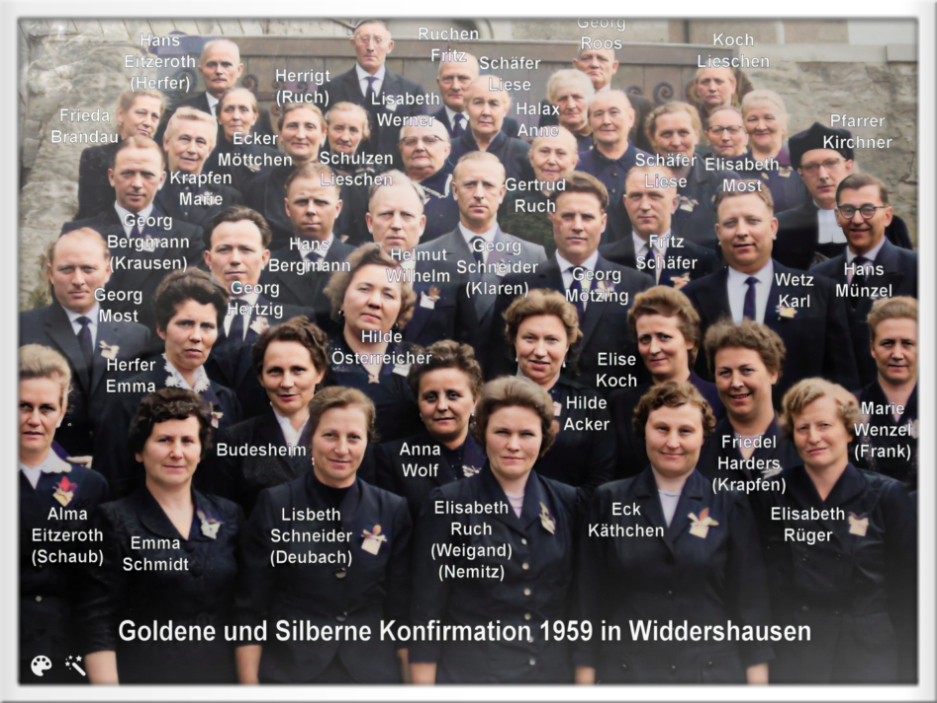 Silberne und Goldene Konfirmation 1959 in Widdershausen der Jahrgänge 1920 und 1895 mit Pfarrer Kirchner