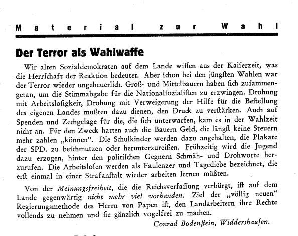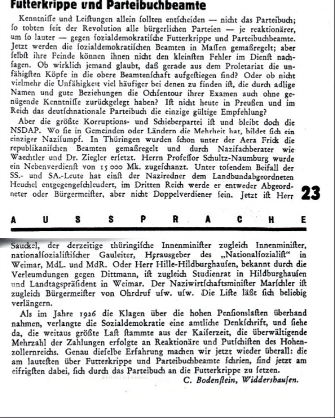 Das Buch verweist auf Zuschriften des Sozialdemokraten Conrad Bodenstein (Widdershausen im Kreis Hersfeld) an das Freie Wort: FW 19. Juni 1932, S. 11