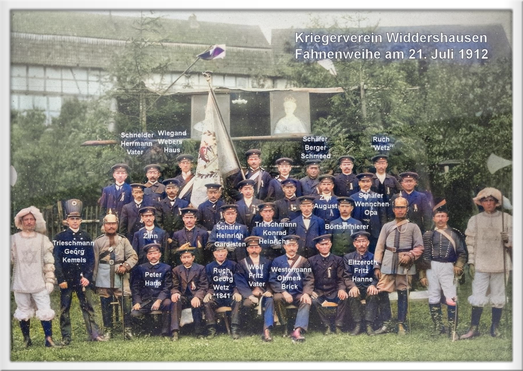 Kriegerverein Widdershausen bei der Fahnenweihe in der Aue hinter dem Kirchberg am 21. Juli 1912