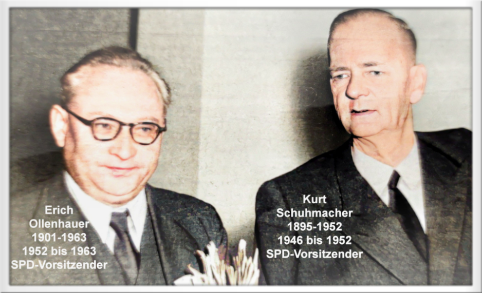 Der SPD Vorsitzende Kurt Schuhmacher und sein Nachfolger Erich Ollenhauser