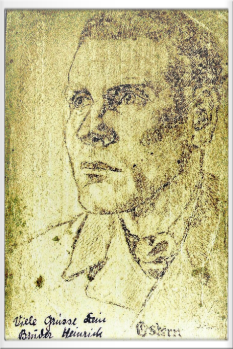 In Lager Ryazan gab es einen Kameraden, der gut zeichnen konnte und gegen ein Honorar von 200 Gramm Brot eine kleine Portraitskizze anfertigte, die man als Postkarte nach Hause schicken durfte, wenn der darauf abgebildete genügend gesund aussah. Hier die Rückseite der Postkarte mit dem Portrait von Heinrich von Ostern 1947