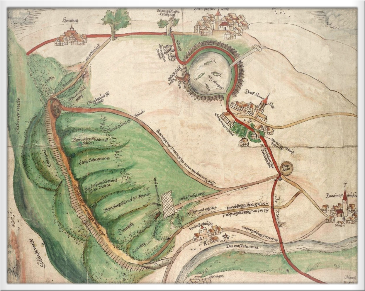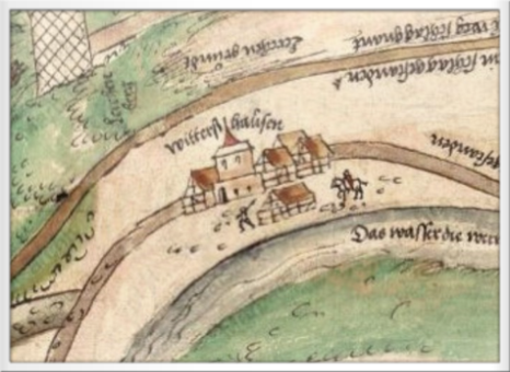 Das Dorf Widdershausen als Ausschnitt aus der Landkarte von 1556 - Staatsarchiv Marburg Bestand PII Nr. 10373