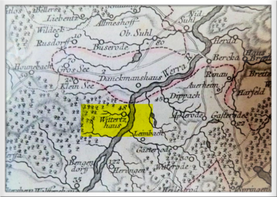 Widdershausen (Wittertzhaus) auf der Landkarte des Tobias Conrad Lotter von 1761 - Ausschnitt