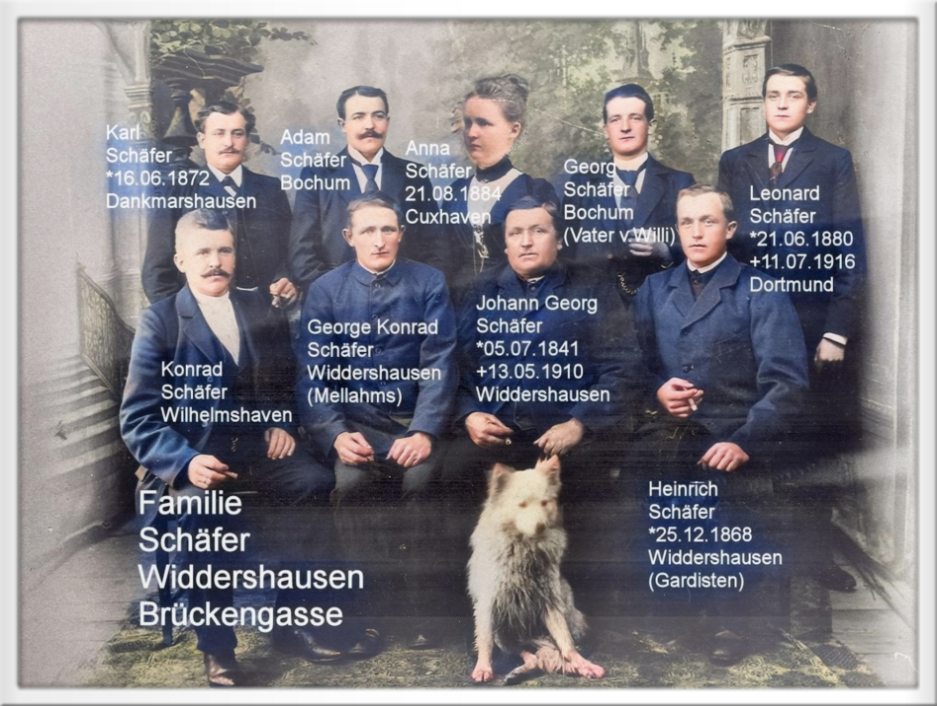Leonhard Schäfer im Kreise seiner Familie in Widdershausen um 1900, die Mutter war bereits bei der Geburt der Tochter Anna 1884 an Typhus verstorben