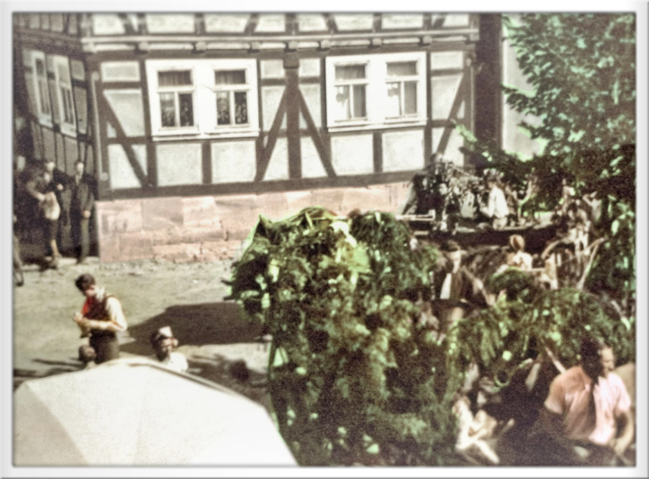 Die Kirmeskapelle ist an der Linde (unter den Kinoplakaten) eingetroffen und die ersten Paare beginnen mit dem Tanz unter der Linde