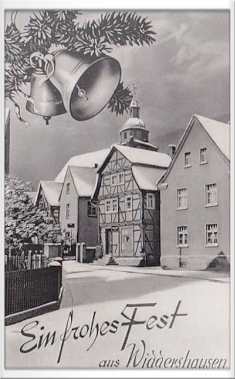 Weihnachtspostkarte aus Widdershausen mit Blick auf die Häuser Breiding/Jahn und Trieschmann/Diegel