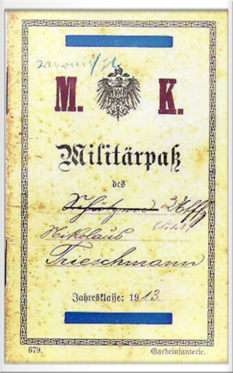 Militärpaß des Uffz. Nikolaus Trieschmann, Jahresklasse:1913 aus Widdershausen