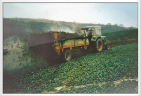 Der Mist wird täglich mit der Entmistungsanlage oder früher manuell mit der Schubkarre auf dem Misthaufen befördert.