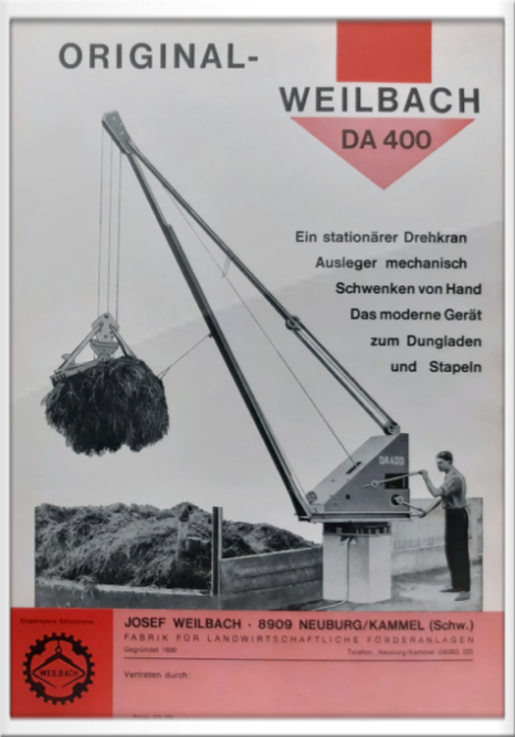 Prospekt eines stationären Dungkranes der Firma Josef Weilbach in Neuburg